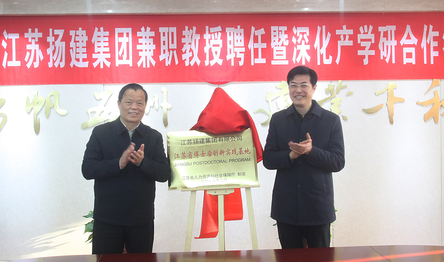 活動中,揚州大學建工學院院長肖鵬教授宣讀了《關于聘任曹德榮同志為揚州大學建筑科學與工程學院兼職教授的決定》;揚州大學黨委副書記葉柏森教授向集團曹德榮董事長頒發了“兼職教授”聘書;揚州大學建工學院肖鵬院長與集團鄒厚存總經理簽訂了雙方《深化產學研合作框架協議》;揚州大學葉柏森副書記與集團曹德榮董事長,共同為“江蘇省博士后創新實踐基地”揭牌。