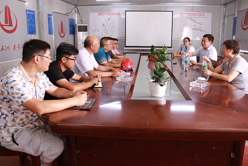 黨委書記康往東在慰問現代農業科技創新中心產業化基地現場施工人員時,首先察看了項目施工現場,詳細了解了項目員工的工作與生活狀況。要求強化安全措施,確保工程質量,保障施工人員的人身健康和安全。總經理鄒厚存在慰問工地的同時,認真檢查詢問項目夏季高溫現場安全生產和落實市64號文件精神情況。
