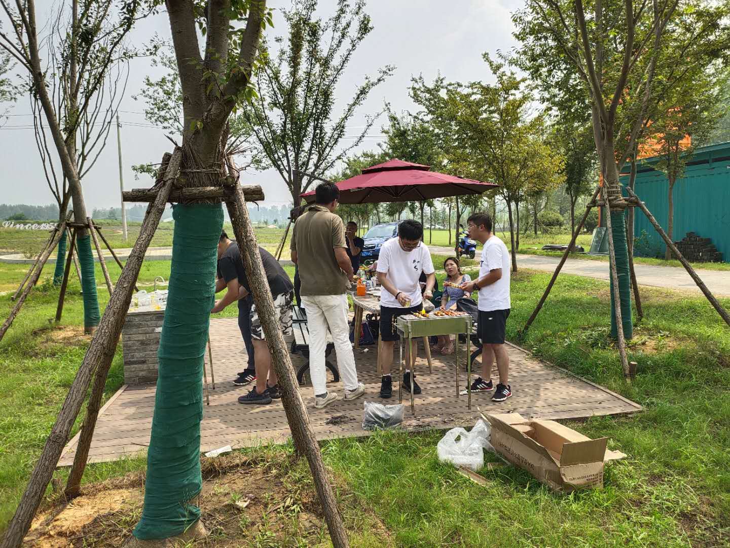 拓展活動結束后,團支部組織大家參加了集體燒烤和游園活動。為保障活動順利開展,觀月湖全體員工冒酷暑戰高溫,提前兩天把燒烤區準備完畢。參加活動的團員在享受到優美環境和美食的同時,也強烈地感受到身為揚建職工的榮譽感。