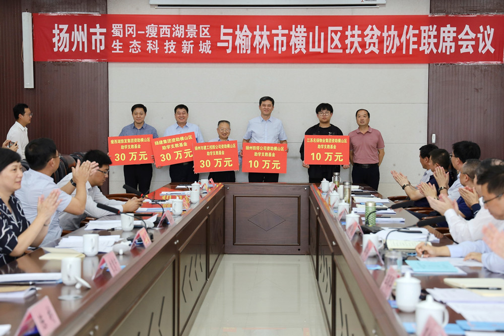 揚建網訊 8月28日,集團隨景區黨政代表團赴陜西省榆林市橫山區出席揚榆扶貧協作聯席會議并開展支教助學捐助活動。