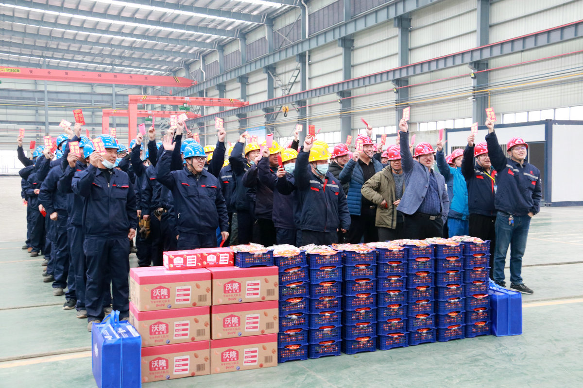 在鋼構公司會議室,曹董事長一行分別給大家送去了新春祝福,并要求大家做好疫情防控與安全生產工作,做好“三保一預”工作,生產任務緊的同時要保安全、保質量、保進度,高質量發展。要求鋼構公司經營層切實關心外地留揚員工,做好他們的后勤保障工作。讓留揚務工人員在揚州度過一個健康、溫暖的安心年。