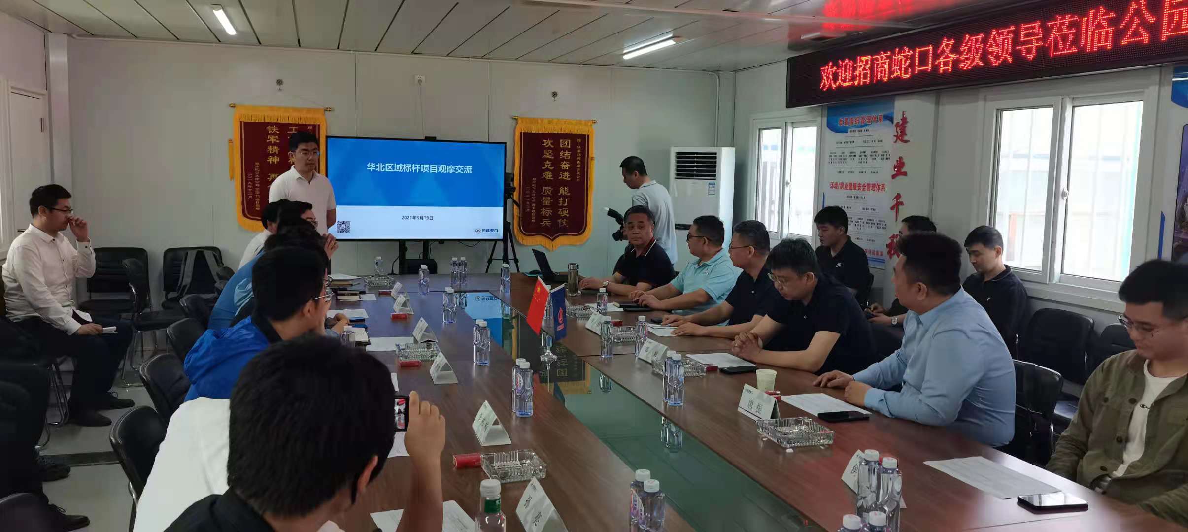 揚建網訊 5月19日,招商蛇口2021年度華北區域標桿項目觀摩交流會在北方公司天津招商公園1872項目召開。招商蛇口總部質量總監申健、招商蛇口華北區域運營總監郭威、招商地產北京公司、天津公司、遼寧公司、哈爾濱公司及雄安公司20余位領導參加會議。