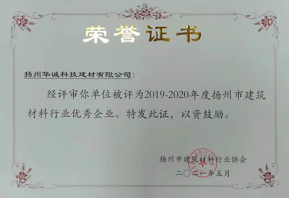 建祥華誠蟬聯揚州市建材行業優秀企業