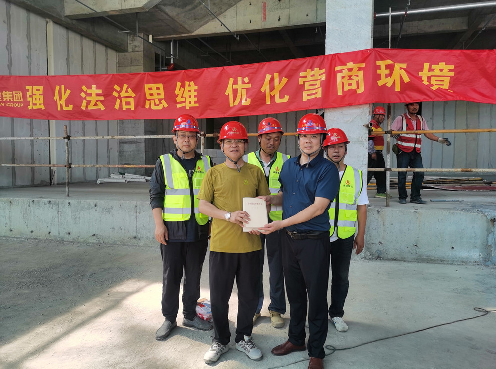 揚(yáng)建網(wǎng)訊 為發(fā)揮黨員先鋒模范作用和黨員領(lǐng)導(dǎo)干部表率作用,6月24日下午,市建管處聯(lián)合市總工會、市司法局、市勞動監(jiān)察在我集團(tuán)揚(yáng)州高等職業(yè)技術(shù)學(xué)校項(xiàng)目現(xiàn)場開展“我為群眾辦實(shí)事”黨員志愿服務(wù)活動。市建管處吳建華主席及其他領(lǐng)導(dǎo)、市總工會、市司法局、市勞動監(jiān)察相關(guān)領(lǐng)導(dǎo)、我集團(tuán)公司副總經(jīng)理劉海斌、企業(yè)管理部部長何平等40余人參與活動。