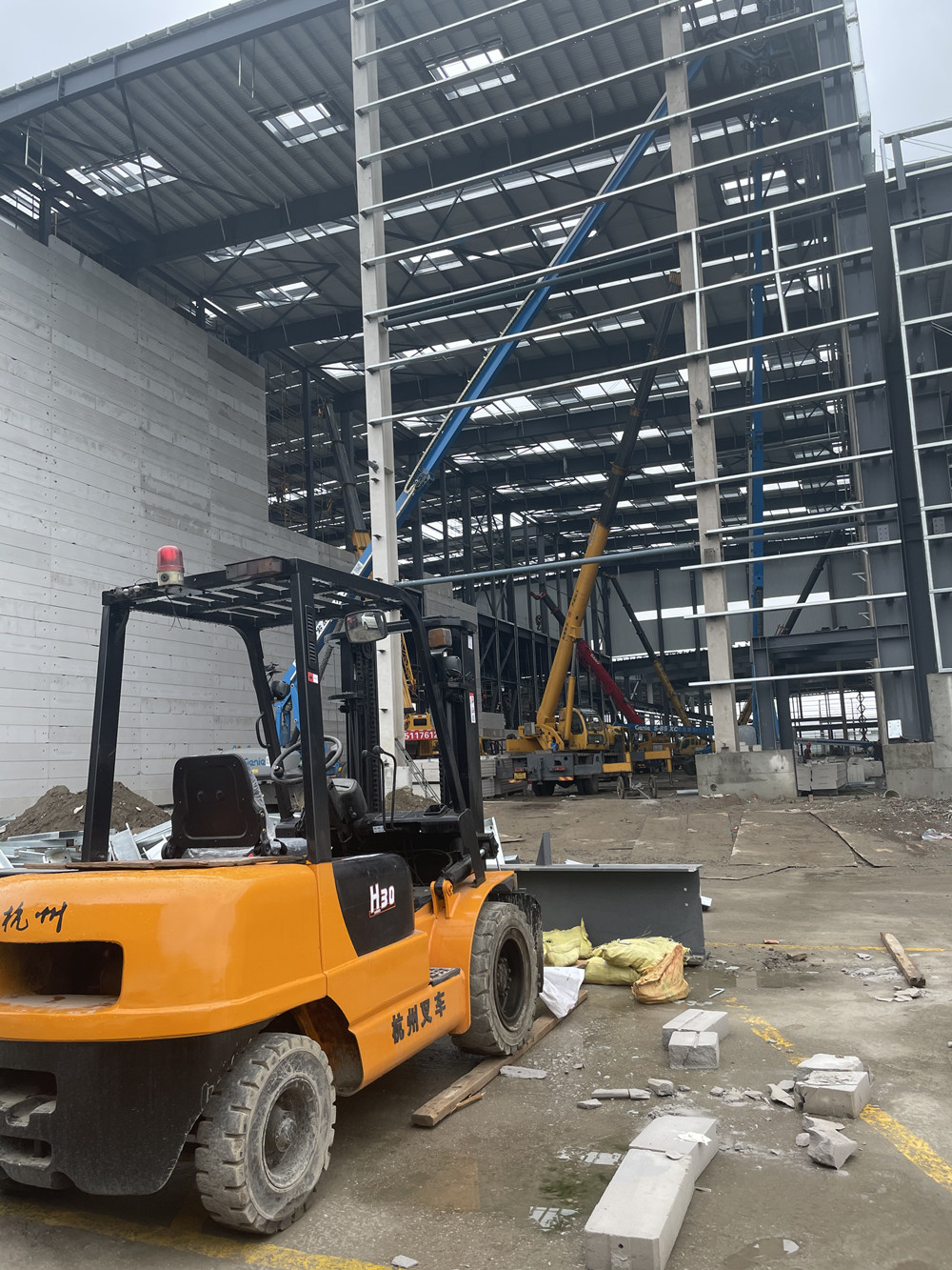 合理部署、周密統(tǒng)籌。時間倒轉(zhuǎn)回20天前。偌大且空曠的鋼結(jié)構(gòu)框架佇立在黃土之上,四面透風(fēng)顯得異常寂寥。墻板、地坪、屋面、水電安裝成為整個立體倉庫被壓縮生產(chǎn)進(jìn)度中最難搞定的事。面對嚴(yán)峻的挑戰(zhàn),項目部立即組織各專業(yè)公司、分包隊組召開生產(chǎn)進(jìn)度會。從生產(chǎn)進(jìn)度、安全、質(zhì)量等方面全盤統(tǒng)籌、全員投入、周密安排,將每道工序在保質(zhì)保量的情況下壓縮到最短時間,并無縫銜接下道工序。