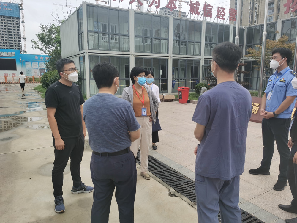 揚建網訊 8月15日上午10:00,揚州市廣陵區郎俊區長和李建芳副區長來到揚州頤和醫療健康中心項目檢查了項目防疫工作。