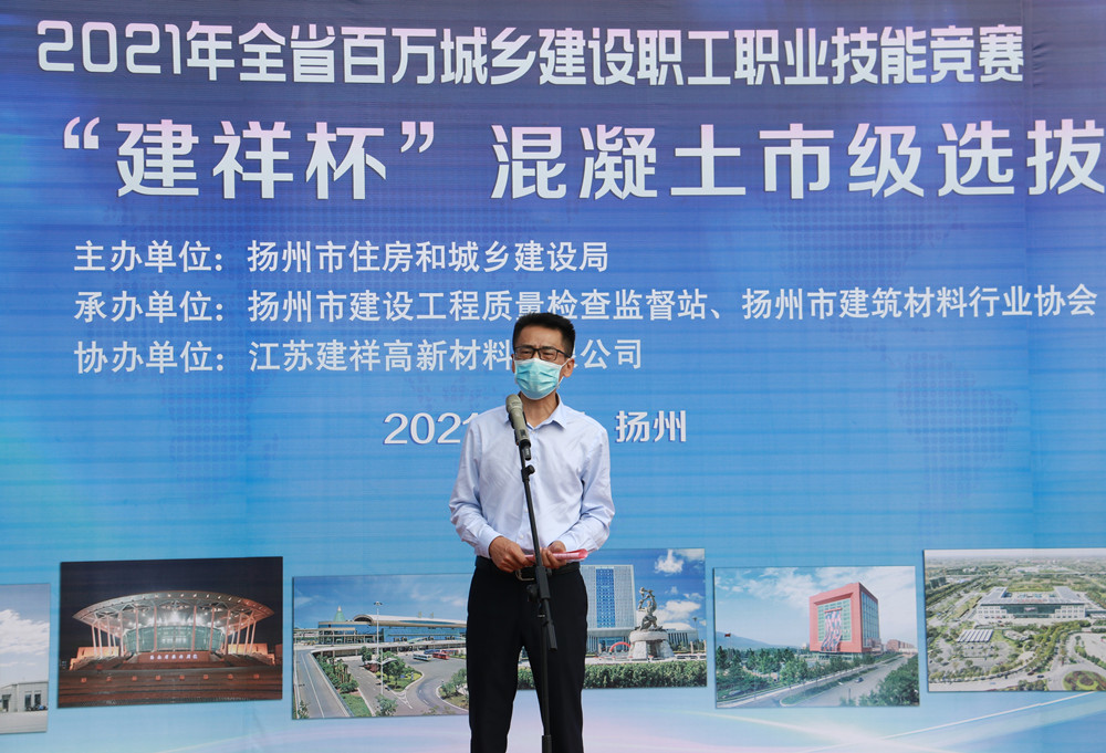 揚建網訊 10月14日上午,2021年全省百萬城鄉建設職工職業技能競賽揚州市“建祥杯”市級選拔賽在我集團華運公司拉開序幕。開幕儀式由市住建局陳立軍處長主持;集團董事、執行總裁、市建筑材料行業協會會長沈國仁出席并發表致辭;市質檢站劉榮祥科長出席并宣讀比賽規則;市住建局耿良副局長出席并作重要講話。本次賽事為市級選拔賽,由江蘇建祥高新材料有限公司冠名并具體操辦,建祥、榮能、金城、強祥、上建等多家全市知名混凝土企業參加。