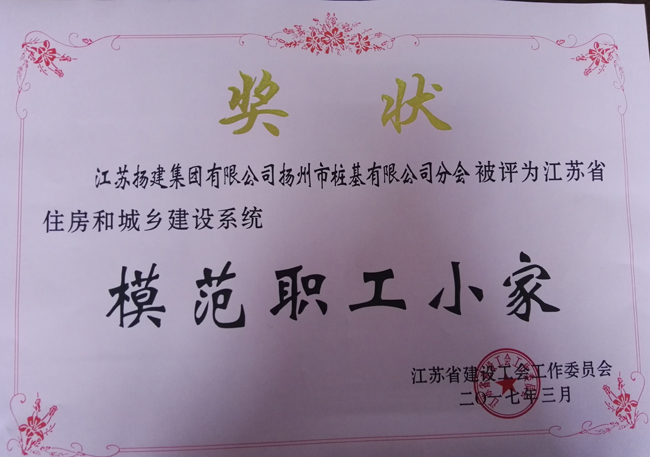 揚建網(wǎng)訊(工會 郭太琮)在省城鄉(xiāng)建設(shè)系統(tǒng)職工勞動競賽和建設(shè)工會工作評比中,我集團榮獲2016年度江蘇省住房和城鄉(xiāng)建設(shè)系統(tǒng)勞動競賽“有功單位”、“和諧勞動關(guān)系模范企業(yè)”、“安康杯”競賽優(yōu)勝單位;揚州市樁基有限公司被評為2016年度江蘇省住房和城鄉(xiāng)建設(shè)系統(tǒng)“模范職工小家”榮譽稱號;揚州華鼎投資咨詢有限公司被評為2016年度江蘇省住房和城鄉(xiāng)建設(shè)系統(tǒng)“五一巾幗標兵崗”榮譽稱號。