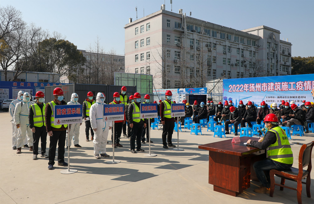 揚建網訊 為貫徹落實省、市新冠疫情防控最新要求,抓細抓實建筑工地各項疫情防控措施,提升疫情應急處置能力,2月25日,市住建局在我集團承建的揚州大學生命科學大樓項目舉行了全市建筑施工疫情防控應急演練觀摩會。市住建局副局長薛炳寬、蘇明清、揚州大學基建處副處長李家鵬、集團公司副總經理丁傳武參加了本次應急演練觀摩會,各縣(市、區)住建局、全市建筑業相關企業以及在建項目人員通過網絡直播觀看了此次演練。