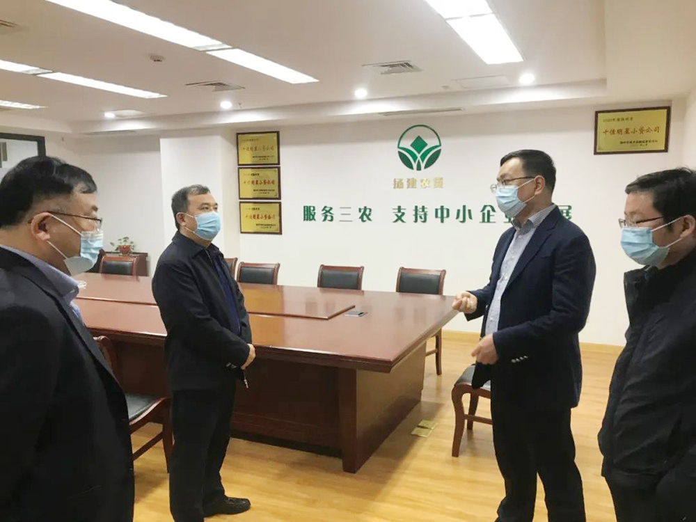 揚(yáng)建網(wǎng)訊 3月14日上午,揚(yáng)州市地方金融監(jiān)督管理局銀行保險處處長周愛軍、揚(yáng)州市金融服務(wù)中心主任張永平和揚(yáng)州市小額貸款公司行業(yè)協(xié)會一行4人,前往揚(yáng)州經(jīng)濟(jì)技術(shù)開發(fā)區(qū)揚(yáng)建農(nóng)村小額貸款有限公司(以下簡稱“揚(yáng)建小貸”)檢查疫情防控等情況。