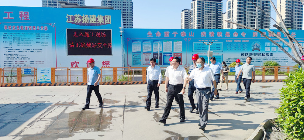 揚建網訊 6月17日下午,市人大常委會副主任蔣愛祥率領市人大環資城建、農村工委有關人員對揚建集團紓解難點、化解風險展開了專題調研,并實地察看了頤和醫療健康中心二標段項目施工情況。