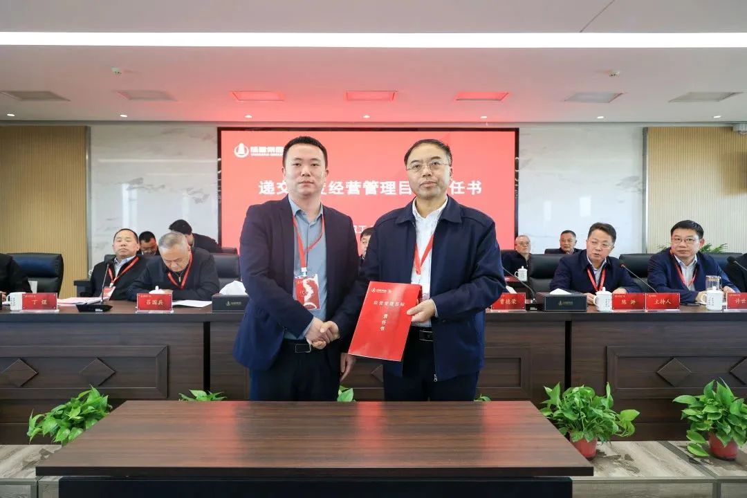 會上,北方公司等8家單位登臺向集團公司總經理遞交了年度《經營管理目標責任書》;項目管理一公司等6家單位登臺向集團公司總經理遞交了年度《安全生產目標責任書》。