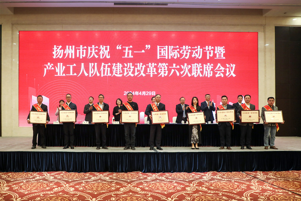 4月29日,揚州市召開慶?!拔逡弧眹H勞動節暨產業工人隊伍建設改革第六次聯席會議,表彰揚州市獲得全國、省、市五一勞動獎和工人先鋒號的單位及代表。集團公司總經理鄒厚存作為全市唯一獲得全國五一勞動獎狀的單位代表,在會上作了題為《根植主業建精品,守正創新謀發展》的宣講,集團公司副總經理、工會主席劉海斌參加會議。