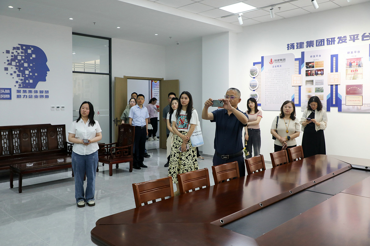 大家參觀了揚建集團產業園黨建主題展廳、產改展廳、大事記展廊、創新工作室、戎耀之家、愛心職工之家(職工書屋),了解了揚建集團產改工作的整體推進情況及特色、亮點,對揚建集團根植建筑主業建精品、著力培育新時代產業工人隊伍和新質生產力的各項舉措表示贊賞。