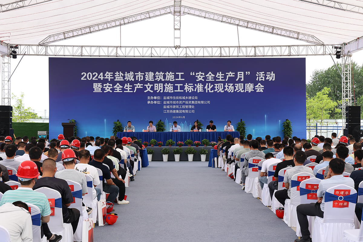 揚建網(wǎng)訊 6月25日,鹽城市住房和城鄉(xiāng)建設(shè)局在江蘇揚建集團有限公司承建的鹽城市第四人民醫(yī)院異地新建工程召開了2024年度鹽城市建筑施工“安全生產(chǎn)月”活動暨安全生產(chǎn)文明施工標準化現(xiàn)場觀摩會。鹽城市住建局、鹽城市城投集團、鹽城市各區(qū)縣住建局等各級領(lǐng)導(dǎo),以及全市各建筑監(jiān)督機構(gòu)、各在建項目主要負責人共400余人參加了觀摩。