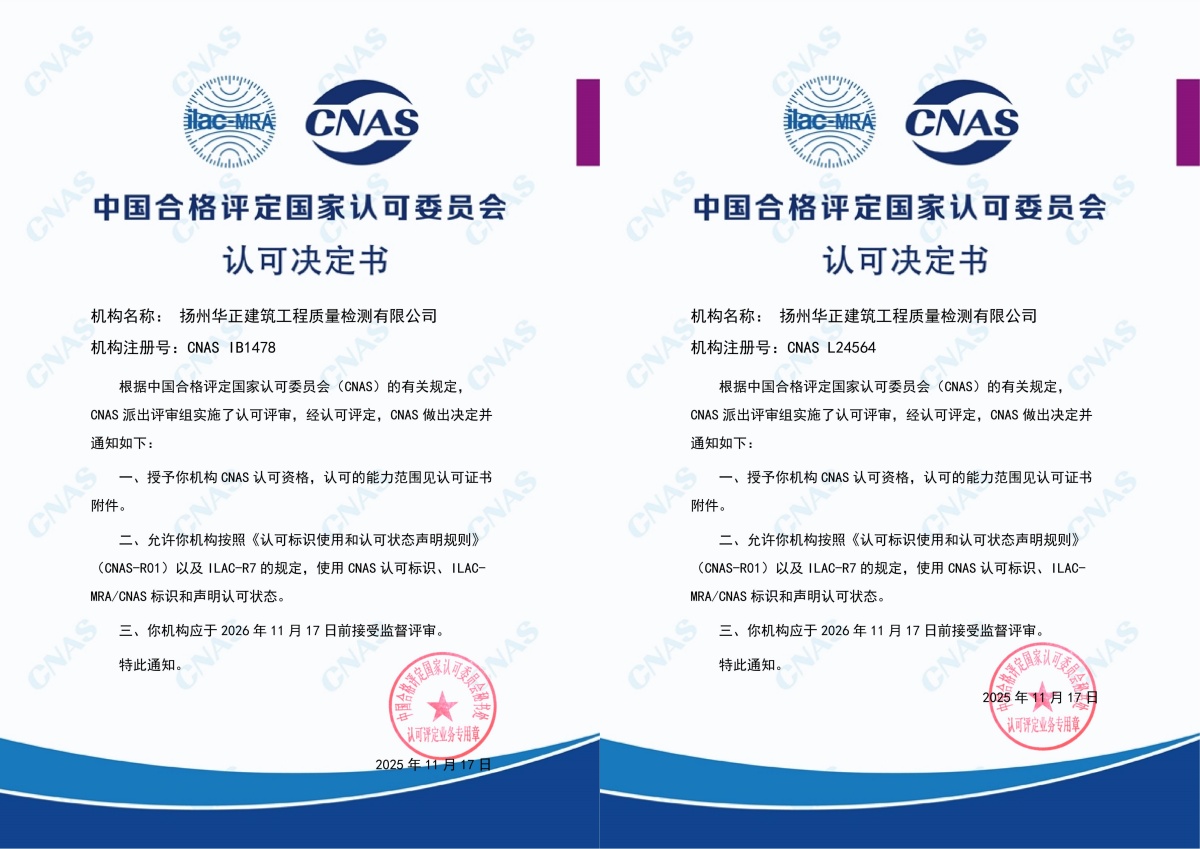 華正公司為揚州市首家獲得CNAS檢驗機構認可的企業,同時也是揚州地區首個同時擁有CNAS實驗室與檢驗機構“雙認可”資質的企業。展望未來,華正公司將以CNAS認可為起點,嚴格遵循認可準則推進各項業務,持續提升企業技術能力與質量管理水平,充分發揮國家認可帶來的公信優勢,積極開拓市場,為客戶提供更權威、可靠的檢驗檢測服務,并致力于促進行業整體質量水平提升,在推進質量強國建設進程中履行企業責任、展現應有擔當。