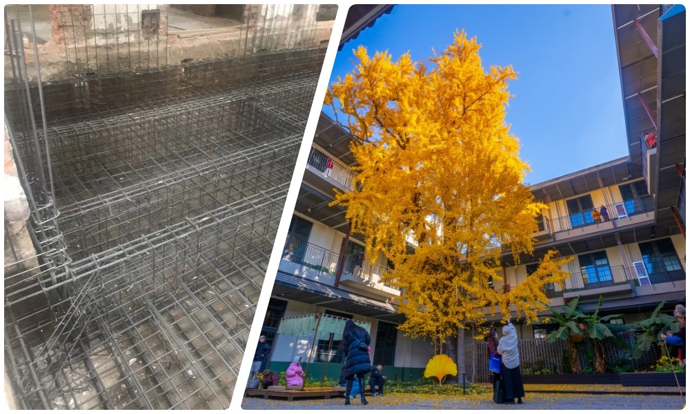 古銀杏根系保護與地基加固的協同處理是項目首道難關。這棵“鎮院之寶”扎根兩百余年,根系深入地下,常規大開挖方案被直接摒棄。針對多棟建筑的基礎加固需求,團隊采用微擾動壓密注漿工藝,選用小型注漿機施工,全程嚴控注漿參數,實時監測土體位移,所有基礎工程均通過承載力檢測,筑牢安全根基。