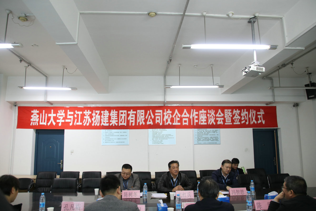 座談過程中,雙方首先觀看了各自的宣傳片,增進了相互了解。隨后,燕大張?zhí)庨L介紹該校簡要校史、發(fā)展概況和畢業(yè)生就業(yè)情況;我集團曹董事長介紹了揚建的發(fā)展概況和人才需求情況;許世明董事就近年來揚建集團引進、培養(yǎng)和使用的燕山大學優(yōu)秀畢業(yè)生情況作了介紹。最后,他們代表校企雙方正式簽署了《燕山大學-江蘇揚建集團有限公司校企合作協(xié)議》。根據(jù)該協(xié)議,我集團將在燕大設立優(yōu)秀生源基地,燕大將在我集團設立畢業(yè)生就業(yè)基地;雙方定期聯(lián)系,建立人才供需信息互動機制;不定期互訪,雙方在人才培養(yǎng)與就業(yè)、在職骨干深造、教學改革、專業(yè)設置、產(chǎn)學研合作、互派導師或顧問等方面更好互動、深入合作。
