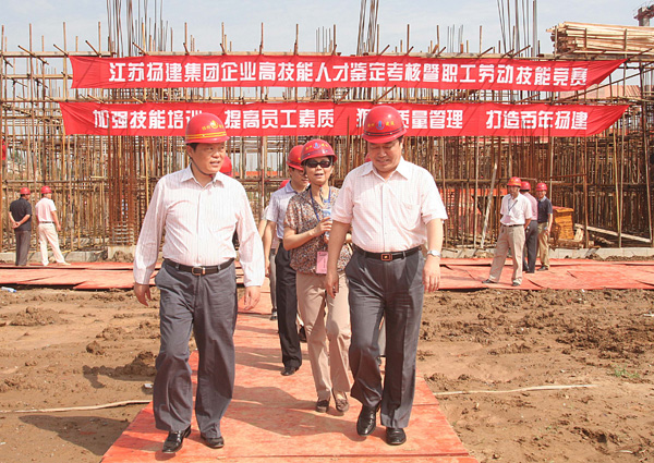 2009年6月22日至23日,集團在揚州市體育運動學校遷建工程施工現場舉辦了“企業高技能人才鑒定考核暨職工勞動技能競賽”,揚州市勞動和社會保障局顏軍副局長等領導和曹德榮、楊志娟、鄒厚存、張振新等集團領導蒞臨現場指導。經過40名選手的精心準備和認真努力,整個鑒定考核工作取得了圓滿成功。