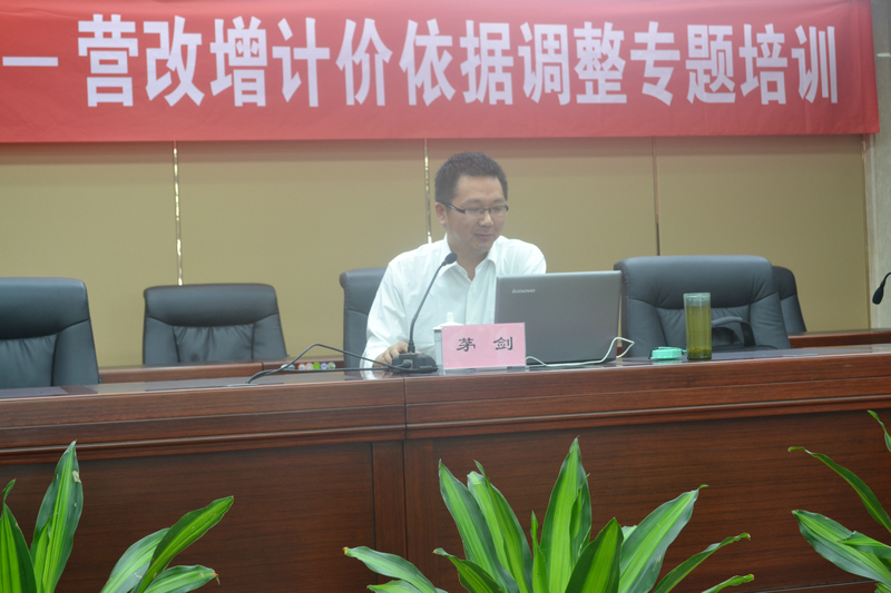 茅劍總工首先引導大家學習了營改增的有關政策文件、建筑業營改增建設工程計價依據調整的通知,讓大家全面了解營改增相關政策變化。隨即又從“建筑業營改增的必要性”、“營改增實施辦法的解讀”、“營改增對工程計價的影響”、“營改增對建筑業的影響”四個方面詳細闡述了營改增政策的有關重點內容,對新的政策變化進行了分析并給出了應對方案。培訓過程中,他尤其針對營改增計價依據調整情況進行了專業講解,列舉了造價實例進行了剖析,使得培訓內容生動通俗、便于理解。
